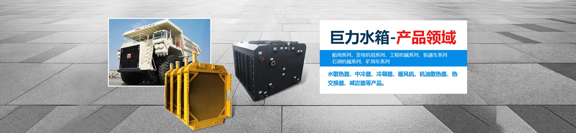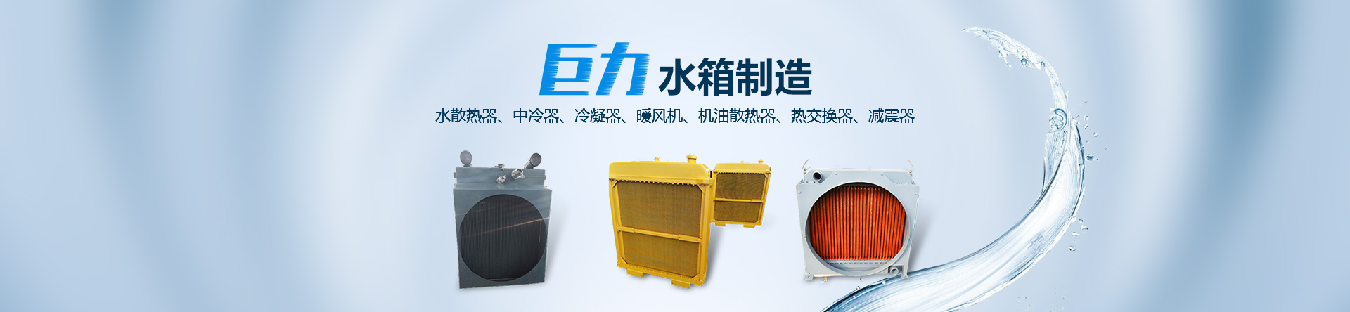 林州市巨力水箱制造有限公司其前身為林縣水箱廠、林州市水箱集團有限公司、林州市水箱有限公司于2008年改組成立,公司位于舉世聞名的紅旗渠畔—林州市臨淇鎮,公司占地面積3.6萬平方米(其中建筑面積1.6萬平方米,輔助建筑面積0.6萬平方米),總資產6000萬元,現有職工178名;其中技術職稱26名,中級技術職稱64名。產品覆蓋面積大,市場前景十分廣泛,產品遍布全國各地的大型礦山、石油、石化、冶金、水利、鐵路、工程機械等領域,成為冶金、化工、石油、石化系統網絡成員單位。 本公司技術力量雄厚,生產設備精良,工藝裝備,檢測設備完善,產品品種齊全,質量上乘。主要生產的產品有:各種型號進口、國產重型汽車、內燃機車、輪船、石油、冶金、化工、工程機械、發電機組等領域的水散熱器、中冷器、冷凝器、暖風機、機油散熱器、熱交換器、減震器等產品。并可根據客戶需要承擔新產品的開發、設計和制造任務。公司的各項技術質量均符合GB9421-88,JB/T8875-2005等標準,2008年通過了汽車行業的LSO/TS16949:2009質量標準。